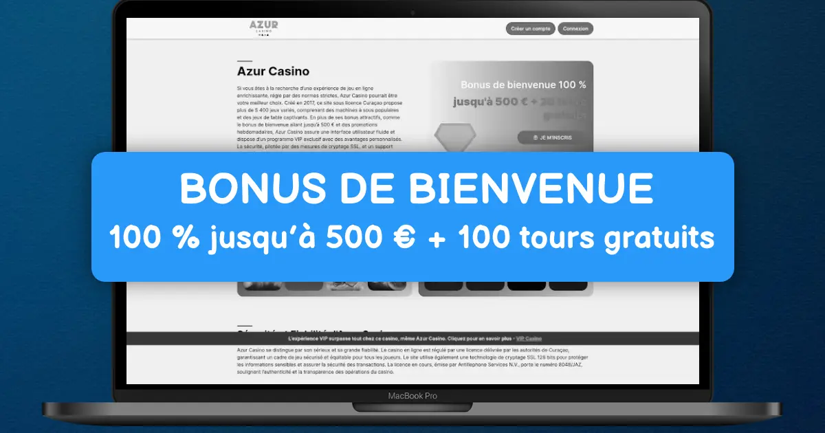 Casino Azur accueille les nouveaux membres avec une offre de bienvenue particulièrement attractive pouvant atteindre 500€ accompagnés de 20 tours gratuits sur une sélection de machines à sous populaires. Cette promotion s'active dès le premier dépôt, avec un montant minimum de 10€ pour bénéficier de l'intégralité des avantages.